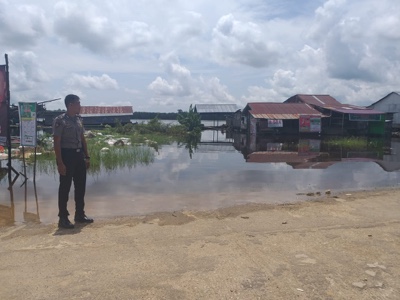 Mendengar informasi tersebut personel Polsek Belitang Bripda Elfriza mengecek kebeberapa titik yang dianggap rawan terkena banjir, Senin, (4/3/2019).