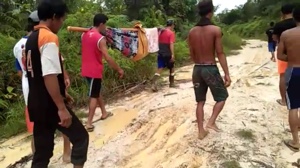 SEKADAU – Akibat jalan rusak tidak bisa dilalui oleh kendaraan roda dua maupun roda empat, sejumlah warga kampung Engkudu membawa seorang warga yang merupakan nenek-nenek bernama H, harus berjalan kaki dan dipikul menggunkaan tandu berjarak sekitar 2 (dua) jam menuju pusat desa Teruduk Dampak, kecamatan Belitang Hulu, kabupaten Sekadau, Minggu 28 April 2019.