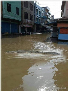 Setelah ditelusuri gambar buaya tersebut adalah hoax yang diedit oleh seseorang yang tidak bertanggungjawab.