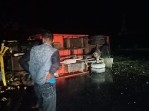 “Bannya slip, langsung tumbang,” kata Isak, pengemudi truk tersebut.
