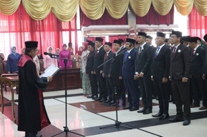 Dalam pengucapan Sumpah/Janji Anggota DPRD Kota Pontianak, Gubernur Kalbar Sutarmidji memberikan ucapan selamat bagi 45 anggota DPRD terpilih periode 2019-2024.