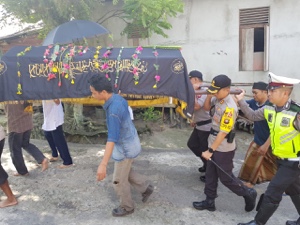 Setelah itu jenazah dibawa dari rumah duka menuju TPU Kelampai Hilir Tengah Ngabang untuk dikebumikan dengan pengawalan mobil Patroli Satuan Lalu Lintas Polres Landak.