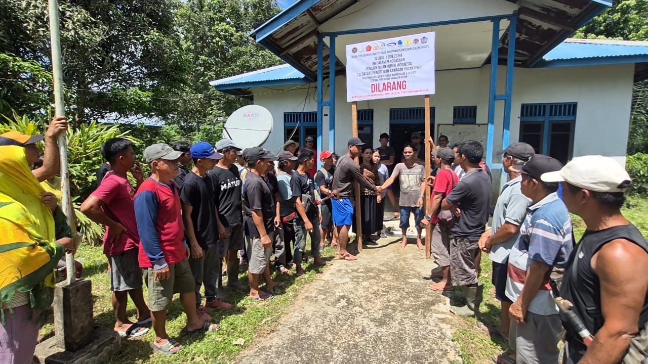 Protes Keras, Warga Nanga Nuar Pindahkan dan Serahkan Patok ke Pemdes