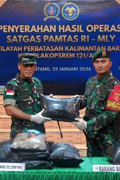 Satgas Pamtas Gagalkan Penyelundupan 12,2 Kg Ganja di Perbatasan RI–Malaysia