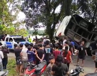 Bus DAMRI Terguling di Tanjakan Penyeladi, Satu Penumpang Meninggal