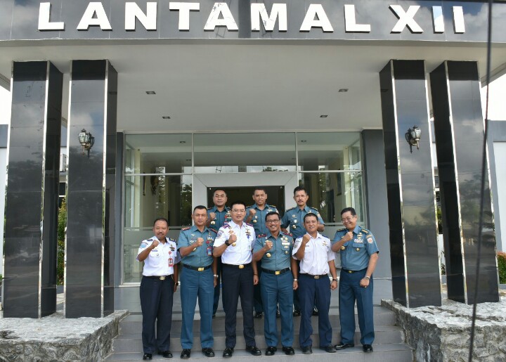 Komandan Pangkalan Utama TNI Angkatan Laut (Danlantamal) XII Pontianak Laksamana Pertama (Laksma) TNI Gregorius Agung W. D. M.Tr (Han) menerima kunjungan Kepala Kesyahbandaran dan Otoritas Pelabuhan ( KSOP) Pontianak, Capt. A Bintang Novy, bertempat Loby Mako Lantamal XII Jl. Kom.yos.Sudarso ...