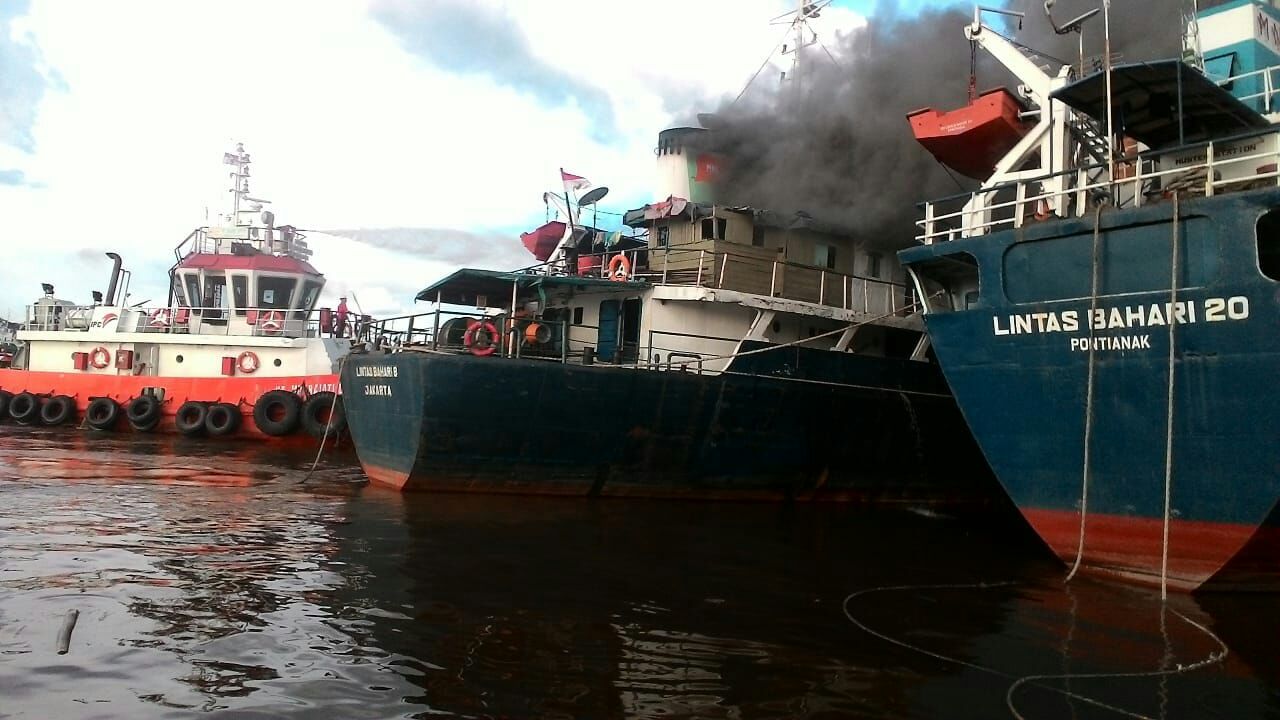 Sebuah kapal Lintas Bahari 8 Jakarta yang bersandar di tepian sungai Kapuas, Jalan Kom Yos Sudarso Pontianak Barat, terbakar Selasa sore, (22/5) Sekitar Pukul 16.00 Wib. Untuk menjinakkan kobaran api dan asap yang keluar dari dalam kapal, petugas pemadam kebaran ...
