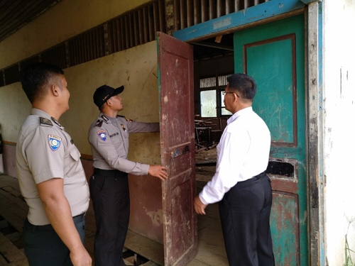 LANDAK – Kepolisian Sektor Air Besar Polres Landak Menerima pengaduan dari pihak sekolah Dasar Negeri (SDN) 07 Hanura Kecamatan Air Besar, Kabupaten Landak di Serimbu dan langsung berangkat ke TKP. Tampak ruangan paling ujung samping kelas V (Lima) pintunya rusak ...