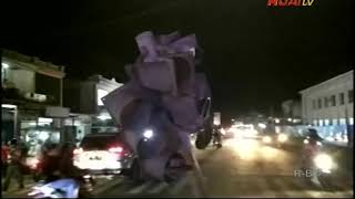 Sebuah mobil mini bus menabrak tiang lampu pengatur lalu lintas, di persimpangan rumah sakit umum daerah agoesdjam ketapang, rabu malam. Meski tidak ada korban jiwa, namun akibat kecelakaan tunggal tersebut, lampu pengatur lalu lintas dan mobil minibus, rusak berat. ...
