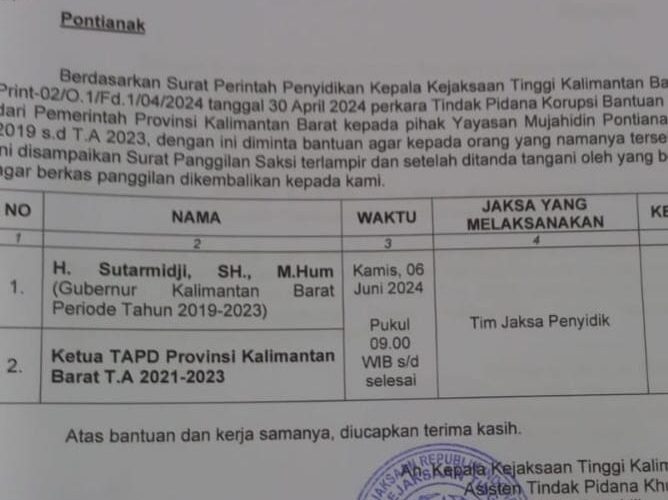PONTIANAK, RUAI.TV – Kepala Kejaksaan Tinggi (Kajati) Kalimantan Barat, Edyward Kaban, menegaskan komitmennya untuk menyelesaikan lima kasus dugaan tindak pidana korupsi yang kini tengah dalam proses penyidikan. Salah satu kasus yang menjadi sorotan adalah dugaan korupsi dana hibah Yayasan Masjid ...