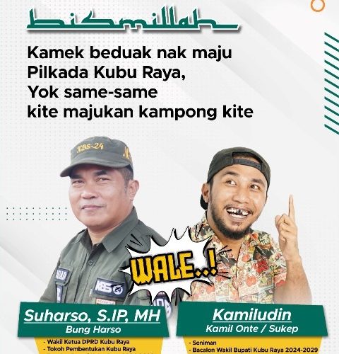 KUBU RAYA, RUAI.TV- Politisi Partai Golongan Karya (Golkar) Suharso menyatakan keseriusannya untuk maju di Pemilihan Kepala daerah (Pilkada) Kabupaten Kubu Raya 27 september 2024. Suharso menggandeng Sukep atau Kamilonte sebagai Bakal Calon Wakilnya. “Ini bukan sekadar anekdot tapi memang saya ...
