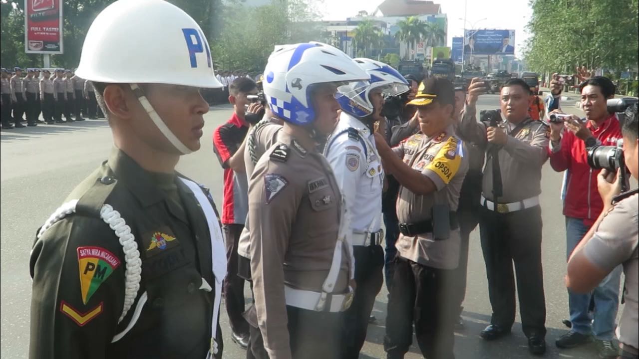 Kepolisian Daerah Kalimantan Barat menggelar apel kesiapsiagaan dalam rangka Operasi Ketupat Kapuas 2018, di Jalan Rahadi Usman Pontianak pukul 07.00 WIB, Selasa pagi (6/6/2018).