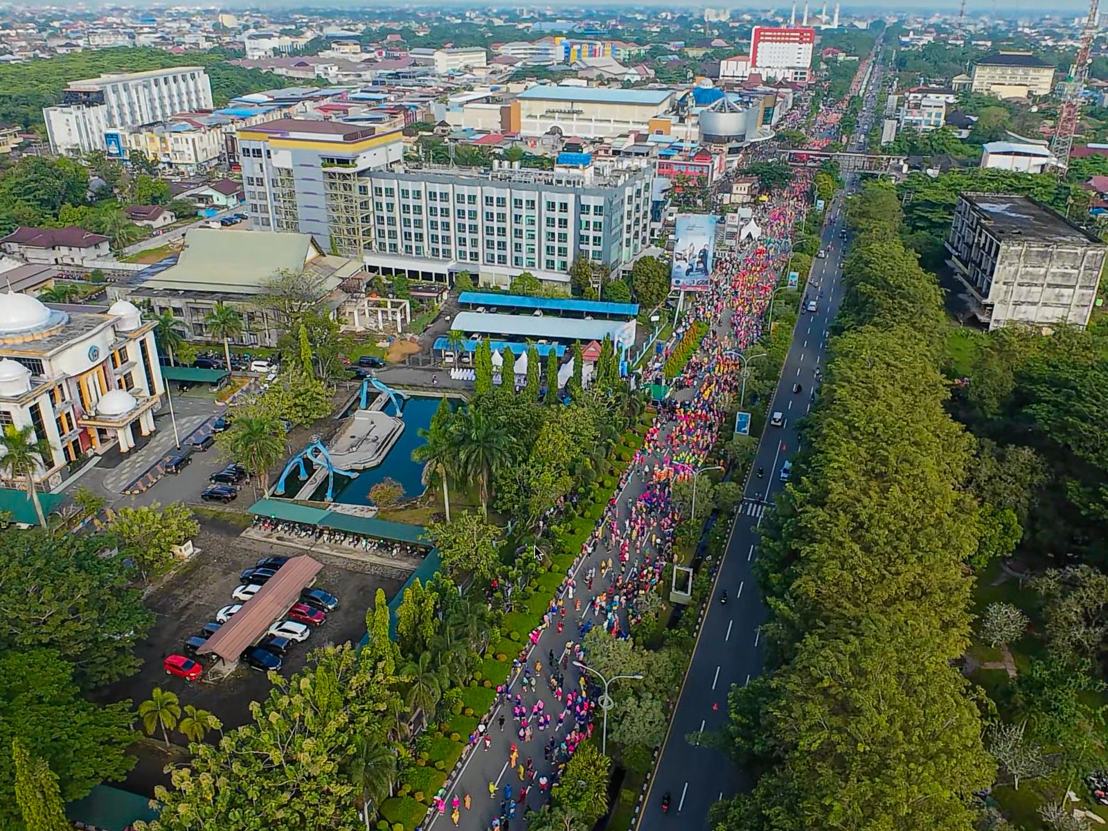 Jumlah peserta yang memadati ruas jalan dari depan Polda Kalbar, hingga persimpangan Kantor Pelayanan Pajak (KPP) Pratama sepanjang empat kilometer ini, berhasil mencetak rekor dunia Museum Rekor Indonesia (MURI).