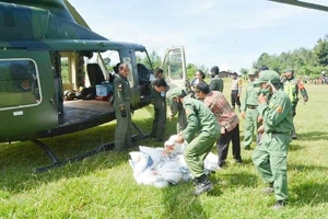 BENGKAYANG – Kodam XII/Tanjungpura kembali membantu Pemerintah Provinsi Kalimantan Barat untuk mendistribusikan bantuan beras ke daerah sulit yaitu wilayah Sungkung, Kecamatan Siding, Kabupaten Bengkayang menggunakan helikopter, Sabtu (30/5) pagi.