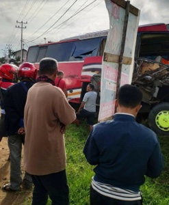 “Pengemudi truk KB 9874 GL ket mobil Bus Damri KB 7629 SL dan jejas rem di TKP, mobil truk KB 9874 GL dikemudikan dari arah Kota Pontianak menuju ke arah Tayan tidak berpenumpang, sesampainya di TKP dari depan berlawanan arah ada mobil Bus Damri KB 7629 SL yang terlalu ke kanan karena jarak dekat tidak bisa dihindari tabrakan terjadi,” ujar Kompol Salbiah melalui Grub WhastApp Wartawan, Rabu (29/1/2020) pagi.