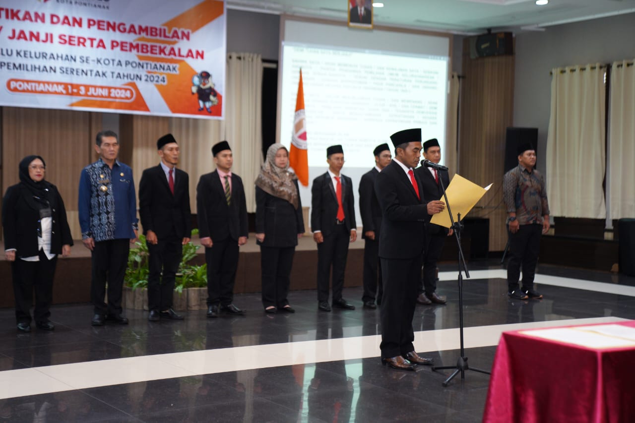 PONTIANAK, RUAI.TV – Ketua Badan Pengawas Pemilihan Umum (Bawaslu) Kota Pontianak, Ridwan, melantik sebanyak 29 Anggota Panitia Pengawas Pemilihan Umum (Panwaslu) Kelurahan se Kota Pontianak, Sabtu (01/06/2024).
