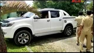Sebuah minibus milik pegawai dinas kesehatan dan keluarga berencana Kabupaten Bengkayang, masuk ke dalam parit, di sekitar kantor dinas kesehatan dan keluarga berencana Kabupaten Bengkayang, selasa siang.