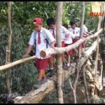 UNTUK MENYEBERANGI SUNGAI TERSEBUT/ SAAT INI PARA SISWA MENGGUNAKAN JEMBATAN ALTERNATIF HASIL SWADAYA MASYARAKAT/ YANG SANGAT MEMBAHAYAKAN//