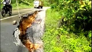 Jalan amblas hampir memutuskan ruas jalan di Dusun Semau Labur, Desa Bagak.