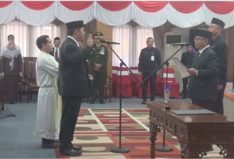 Didampingi rohaniwan Katolik, dia mengucapkan janji yang dipandu oleh Firdaus Zar’in. Kemudian menandatangani berita acara pelantikan, dan penyematan pin sebagai Anggota DPRD.