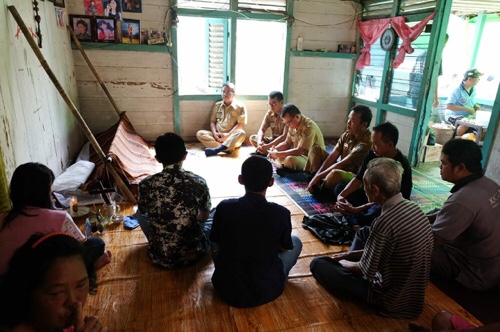 SEKADAU – Bupati Sekadau Rupinus, SH, M.Si didampingi asisten dua Paulus Yohanes, Kepala Dinas kesehatan Emanuel dan Staf ahli Bupati bidang hukum dan pemerintahan Afronius Akim Sehan, melayat ke rumah duka mantan kepala desa Perongkan periode 2003-2008 Asi Kartius di perongkan pada Selasa 21 Agustus 2018.