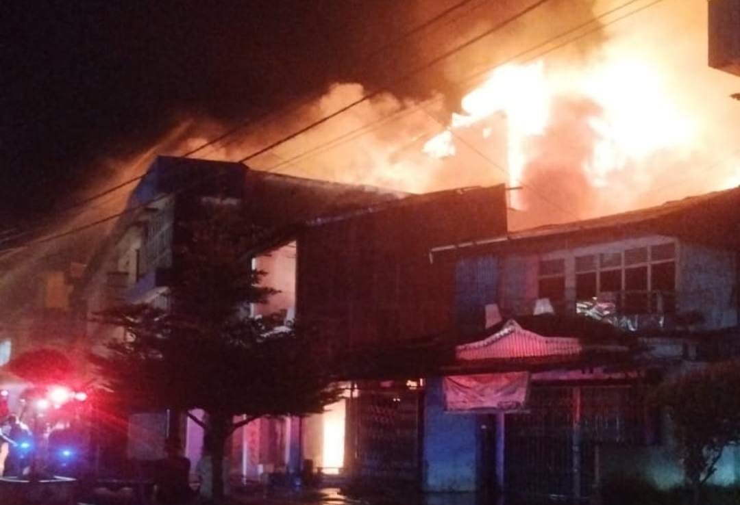 KETAPANG, RUAI.TV – Sebanyak 14 rumah toko (ruko) di jalan Merdeka, Kelurahan Kantor, Kecamatan Delta Pawan, Kabupaten Ketapang, Provinsi Kalimantan Barat, terbakar. Kebakaran hebat ini terjadi pada Minggu (03/03/2024) sekitar pukul 03.40 WIB.