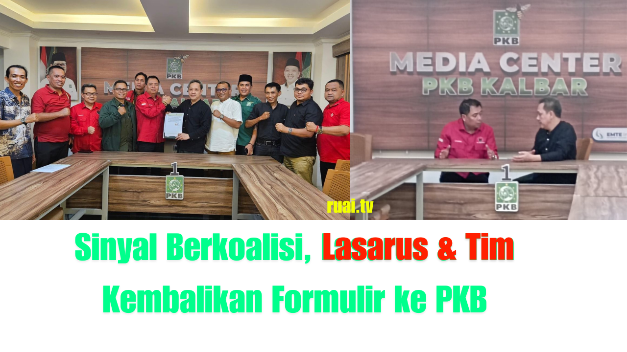 PONTIANAK, RUAI.TV-Ketua DPD PDI Perjuangan Kalimantan Barat (Kalbar), Lasarus, didampingi sejumlah Pengurus Partai dan Relawan Lasarus For Gubernur Kalimantan Barat, bersilaturrahmi sekaligus mengembalikan Formulir Pendaftaran Lasarus sebagai Bakal Calon Gubernur Kalbar ke Dewan Pimpinan Wilayah Partai Kebangkitan Bangsa (DPW PKB) Kalbar, jumat 7/06/2024.