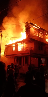 Kebakaran yang diduga berawal dari sebuah penginapan yang berada di Komplek Pasar Merdeka dengan cepat membesar dan menghanguskan sejumlah ruko lainnya.