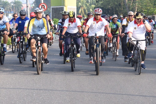 Olahraga bersepeda merupakan salah satu olahraga rekreasi yang dapat menunjang pembinaan fisik dan mental oleh karenanya Lantamal XII turut mendukung Program yang sudah di Launching pemerintah Prov. Kalbar bersama Bapak Kapolda Kalbar yang menyampaikan “Bike To Work/Bike to School,” sehingga harapannya, seluruh masyarakat dapat sehat sambil kita mengurangi dari efek polusi dan jalur sepeda yang sudah ada di Kalimantan Barat dapat digunakan lebih optimal dan lebih diperluas lagi sehingga warga kota Pontianak dapat menggunakan sepeda di jalur yang baik dan dalam kondisi yang aman. Marilah pada kesempatan ini kami mengajak bersama-sama bersepeda dengan gembira, saya berpesan jaga keamanan dan keselamatan masing-masing, tidak usah terburu-buru tidak ada yang juara, ikuti kendaraan Patroli pengawal (Patwal) sampai finish dalam keadaan aman dan lancar, tidak lupa kami ucapkan terima kasih kepada pihak Event Organiser dalam hal ini Agung Samudera Karya Production, para sponsor PT. AKA, Bank Mandiri, Bank BRI yang sudah mewujudkan Bazar murah, Hotel Aston, Hotel GoldenTulip, juga pada seluruh peserta Fun Bike kami ucapkan terima kasih atas peran serta dukungannya hingga acara pagi ini terlaksana dan berjalan lancar. Sebelum mengakhiri sambutan, kami mengajak segenap lapisan masyarakat untuk senantiasa bersama-sama menciptakan dan menjaga situasi keamanan baik yang ada di kota Pontianak maupun di Prov. Kalimantan barat agar pembangunan dan peningkatan kemakmuran serta sejahtera dan semakin maju.
