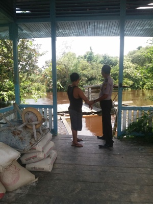 Untuk memastikan masyarakat tidak menjadi korban khususnya yang terdampak banjir, personil Polsek Ketungau Hulu, melakukan pemantauan debit air Sungai, Senin(15/10/2018) sekitar pukul 10.00 WIB, di sekitar perumahan warga desa Senaning Kecamatan Ketungau Hulu.