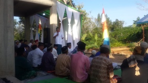 Meski melaksanakan Salat di Masjid yang pembangunannya belum rampung pengerjaannya Ustadz Jimmy dengan semangat membacakan Khotbah yang bertemakan menjelaskan kembali tentang makna-makn Idul Adha, mulai dari makna Haji hingga Makna Kurban dan mendidik anak dari usia dini seperti membentuk bambu dari rebungnya dibentuk.