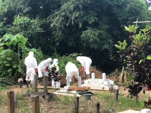 “Untuk petugas, juga diminta empat orang dari desa setempat agar bertugas memakamkan jenazah dan difasilitasi APD lengkap dari Dinas Kesehatan. Jenazah sudah dibungkus plastik dan peti sesuai standar dan protokol pengurusan jenazah Covid-19,” jelasnya.