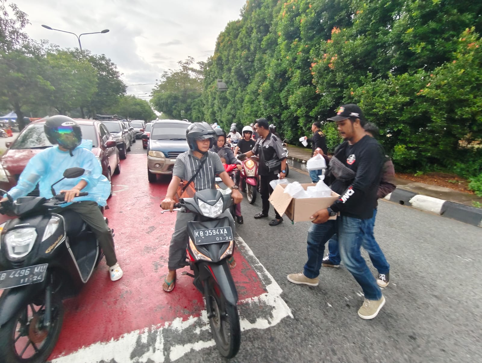 PONTIANAK, RUAI.TV – Kawasan lampu merah Bundaran Tugu Digulis Untan Pontianak, menjadi lokasi pembagian takjil gratis, oleh komunitas motor dari Yamaha NMax Club Indonesia (YNCI) Pontianak Chapter. Kegiatan ini mendapat sambutan antusias dari pengendara, yang menerima takjil.