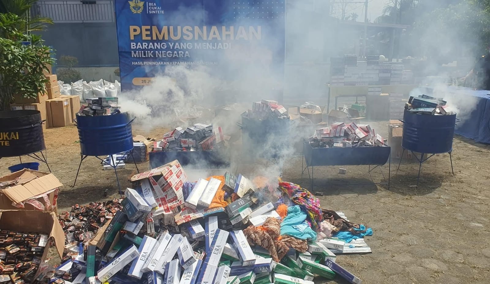 Pemusnahan yang berlangsung Rabu (25/6) ini terdiri dari rokok selundupan, pakaian bekas, hingga perangkat elektronik bekas yang disita dari berbagai titik perbatasan dan daerah pengawasan.