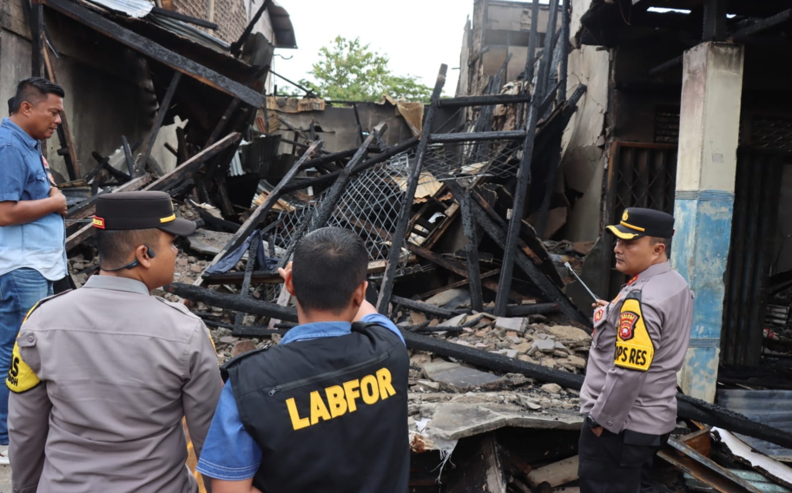 Di lokasi ini, Kapolres dan tim melihat langsung sisa puing bangunan serta memastikan area telah diamankan.