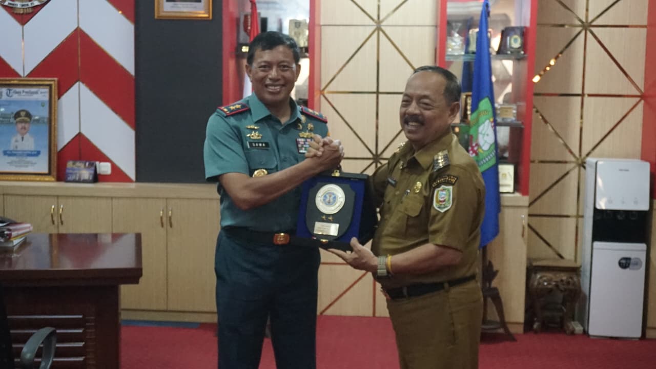 SANGGAU, RUAI.TV – Komandan Komando Daerah Angkatan Laut (Kodaeral) XII, Laksamana Muda TNI Sawa, melakukan courtesy call kepada Bupati Sanggau, Yohanes Ontot, di ruang kerja bupati, Selasa (23/9).