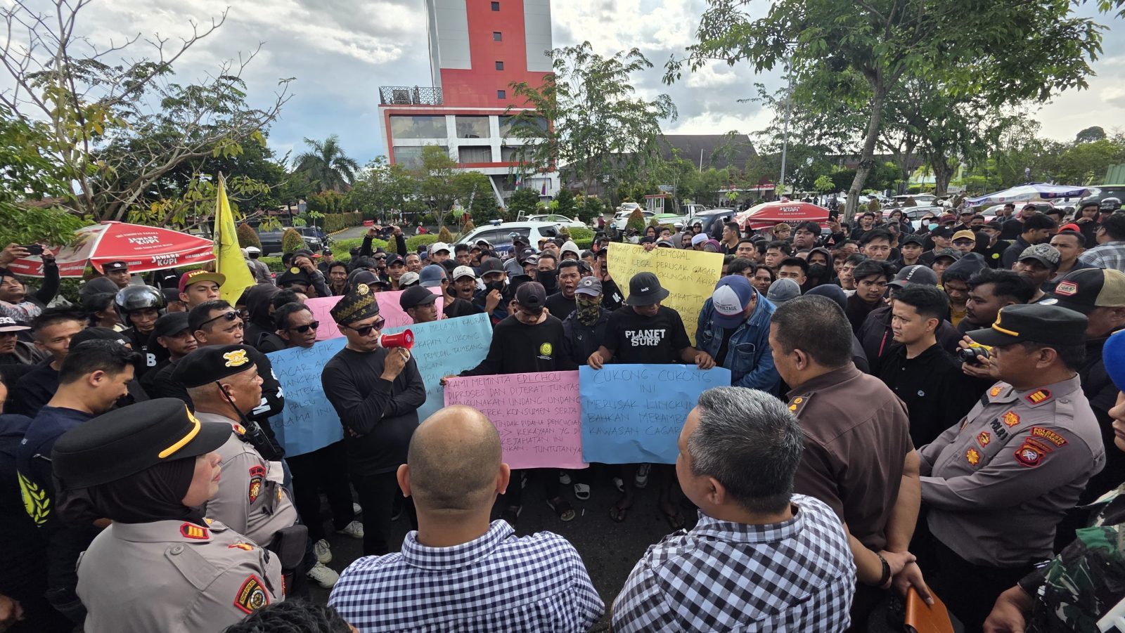 Massa berkumpul di depan Polda Kalbar sejak pukul 14.00 WIB. Mereka membawa spanduk dan poster berisi tuntutan agar aparat penegak hukum bertindak tegas terhadap pelaku usaha ilegal tersebut. Setelah berorasi di depan Polda, massa kemudian melanjutkan aksi ke Kejaksaan Tinggi Kalbar.