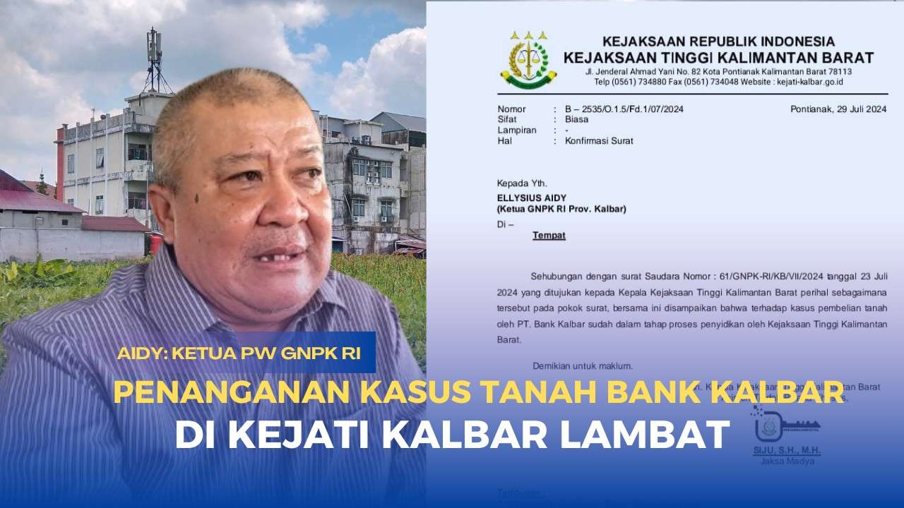 PONTIANAK, RUAI.TV – Ketua Pengurus Wilayah Gerakan Nasional Pencegahan Korupsi Republik Indonesia (GNPK RI) Kalimantan Barat, Ellysius Aidy, mengkritik lambannya penanganan kasus pengadaan tanah Bank Pembangunan Daerah (BPD) Kalbar.