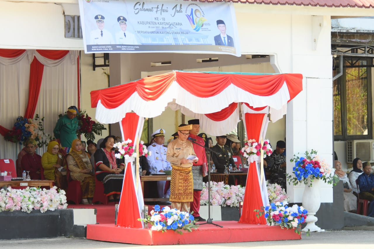 Bupati Kayong Utara, Romi Wijaya, bertindak sebagai Inspektur Upacara dan membacakan amanat Gubernur Kalimantan Barat, Ria Norsan.