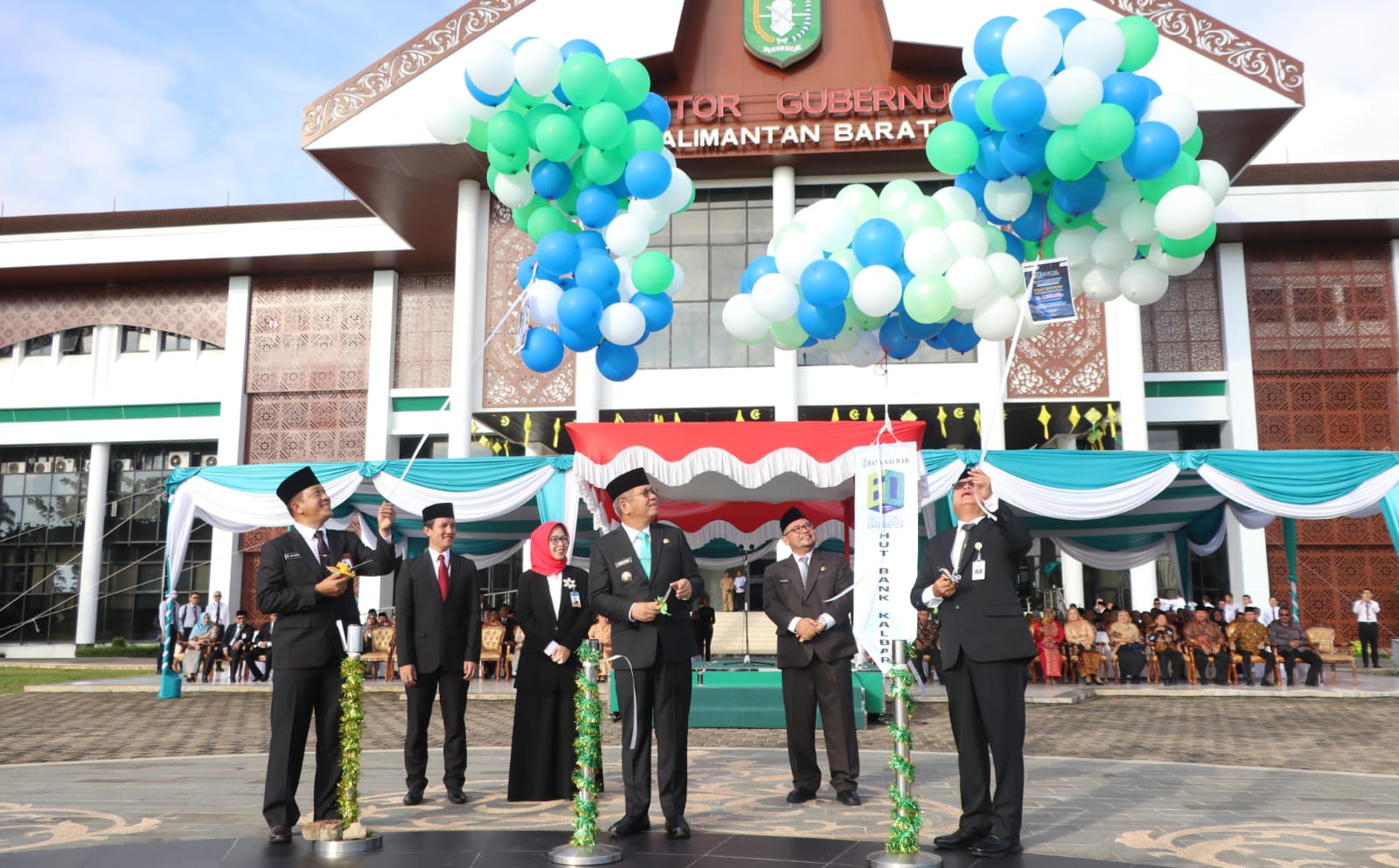 PONTIANAK, RUAI.TV – Dalam rangka memperingati Hari Ulang Tahun (HUT) ke-60 PT Bank Pembangunan Daerah Kalimantan Barat (Bank Kalbar), Penjabat Gubernur Kalimantan Barat, Harisson, memimpin apel dan menyampaikan amanat di Halaman Kantor Gubernur Kalimantan Barat, Selasa (16/4/2024).