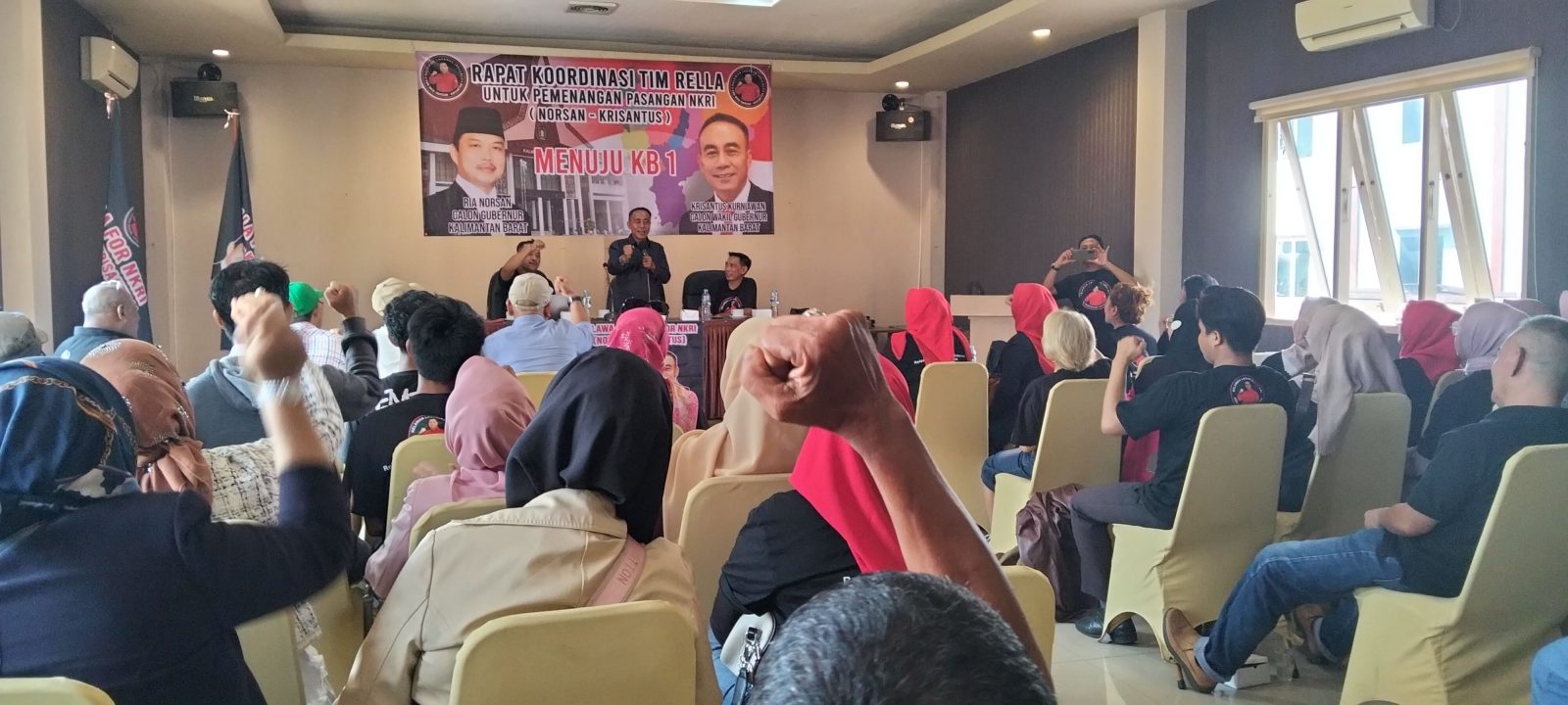 Dalam rapat tersebut, Calon Gubernur Kalbar, Ria Norsan, turut menyapa para relawan melalui video call dalam perjalanan ke Jakarta. Ia memberikan pesan singkat namun kuat, “Tetap solid, jaga persatuan, dan mari kita menangkan pasangan Norsan-Krisantus.”