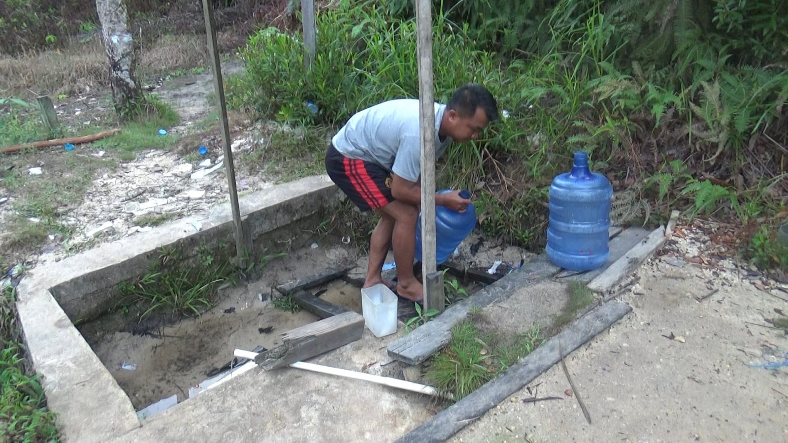 Setiap hari, warga terlihat bergantian mengangkut air menggunakan galon dan jeriken. Air tersebut digunakan untuk berbagai kebutuhan dasar, seperti memasak, mandi, hingga mencuci.