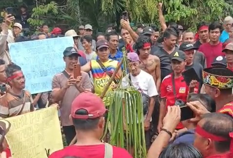 Mereka membentangkan poster, menyampaikan aspirasi secara terbuka, serta memasang pamabakng sebagai simbol penolakan. Dalam tradisi Dayak, pamabakng menjadi penanda sikap tegas masyarakat adat terhadap persoalan yang menyangkut tanah dan ruang hidup.