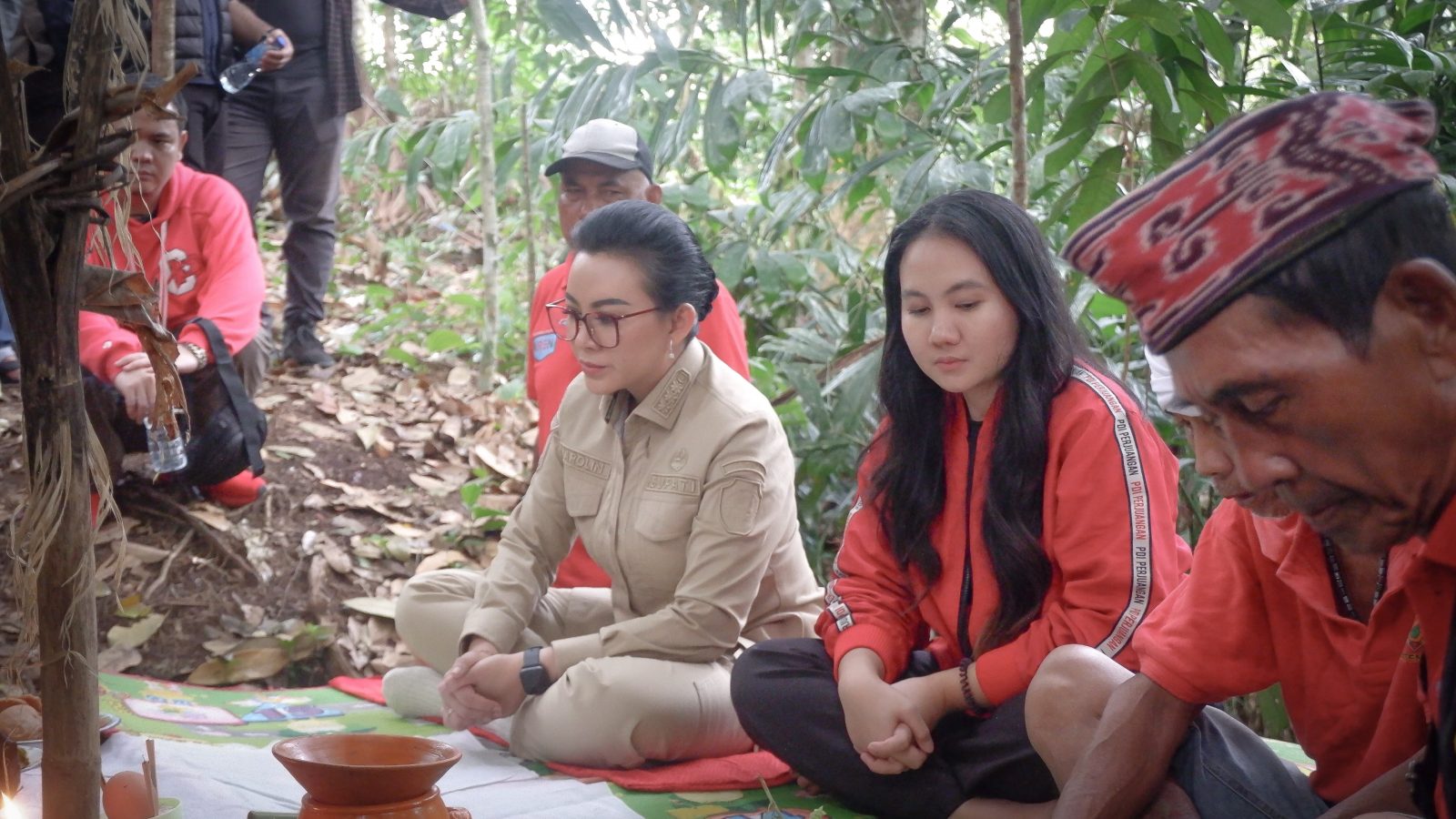 Setibanya di lokasi Panyugu Dara Irakng, Karolin dan Angela Febrianti bersama rombongan langsung mengikuti serangkaian prosesi adat yang dipimpin oleh Eden, seorang ahli pamang adat Dayak Kanayatn.