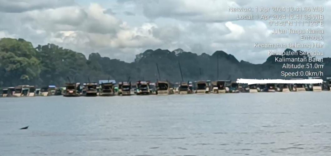 PONTIANAK, RUAI.TV – Redaksi ruai.tv menerima laporan masyarakat berupa kiriman video dan foto terkait adanya aktivitas Penambang Emas Tanpa Izin (PETI) berupa puluhan Lanting Jek yang sedang beroperasi di Sungai Kapuas, Senin (01/04/2024) pukul 13.53 Wib.