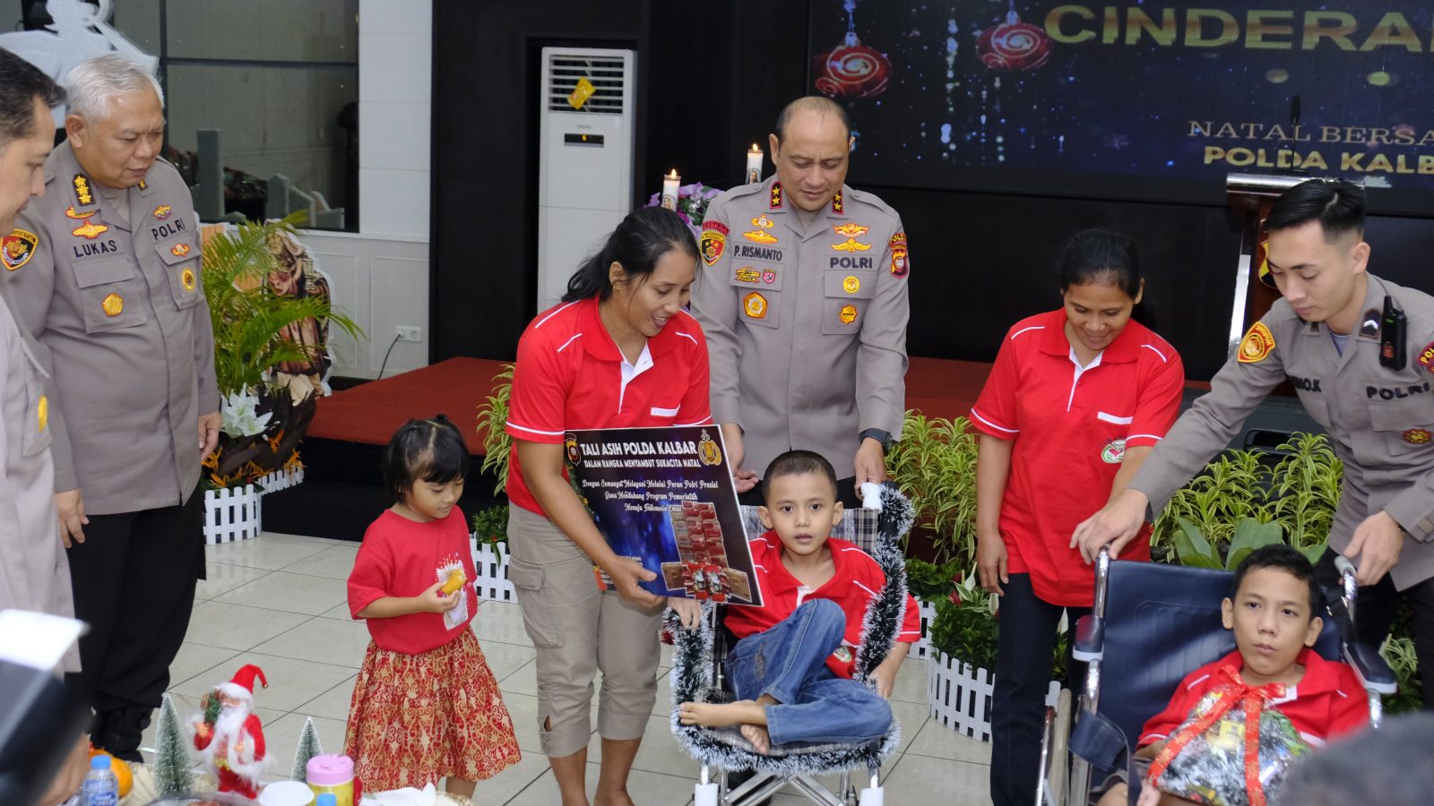 Di penghujung acara, Kapolda Kalbar bersama Wakapolda menyerahkan bingkisan dan tali asih kepada perwakilan dari Yayasan Sebatu, sebuah yayasan yang menampung anak-anak difabel.