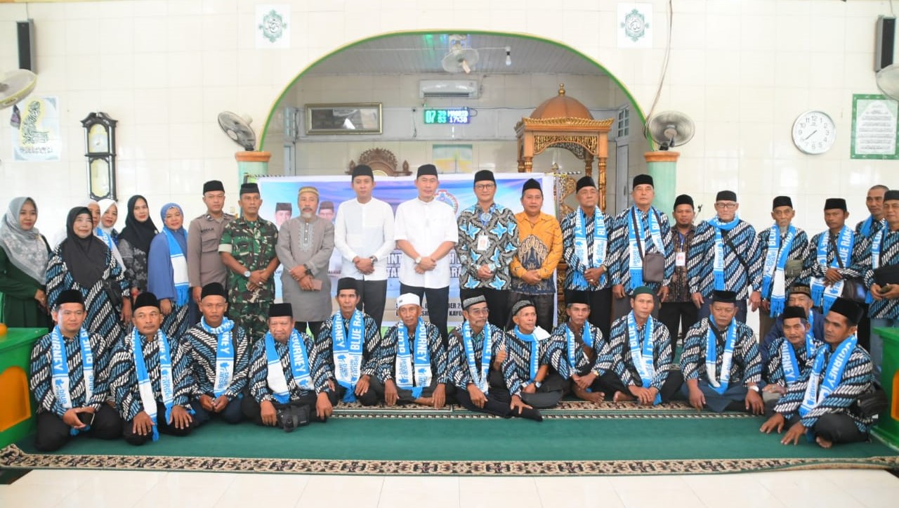 Sekretaris Daerah Kayong Utara, Erwin Sudrajat melepas keberangkatan 27 Jamaah Umrah di Masjid Jami’ Qudsy Sukadana. (Foto/Prokopim)