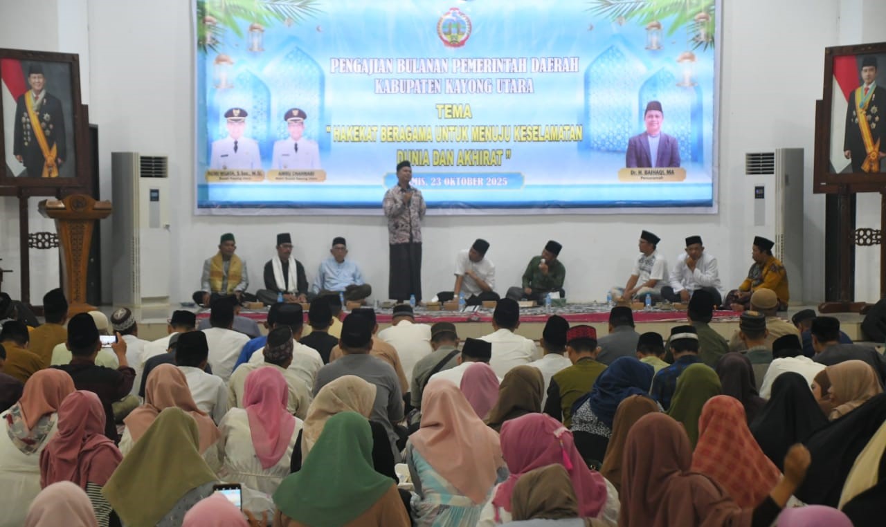 Kegiatan ini berlangsung di Pendopo Bupati Kayong Utara, Sukadana, Kamis (23/10/2025) malam dan turut dihadiri oleh penceramah Ustadz H. Baihaqi, para tokoh agama, tokoh masyarakat, serta aparatur sipil negara (ASN) di lingkungan Pemerintah Kabupaten Kayong Utara.