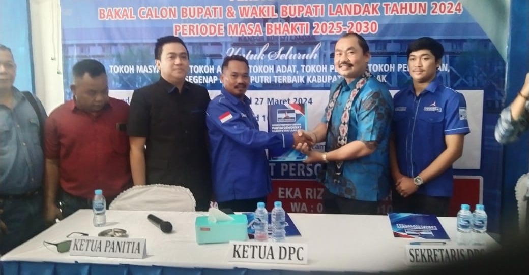 LANDAK, RUAI.TV – Bakal Calon Bupati Landak Periode 2024-2029, Yulius Aho, resmi menyerahkan formulir pendaftaran ke kantor DCP Partai Demokrat Kabupaten Landak, Selasa 26 Maret 2024 pukul 13.00 Wib.