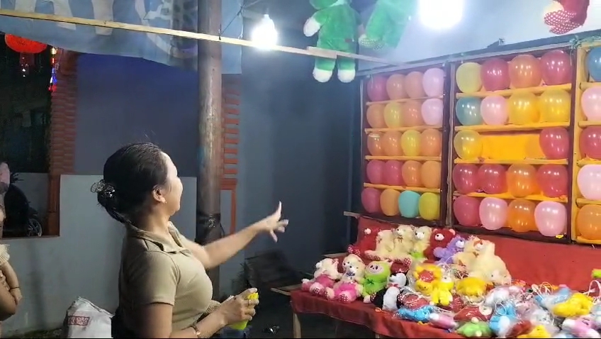 Barang dagangan yang dijual pun beragam, mulai dari makanan dan minuman, ikan hias, hingga permainan ketangkasan. Ramainya pengunjung membuat dagangan mereka laris manis.